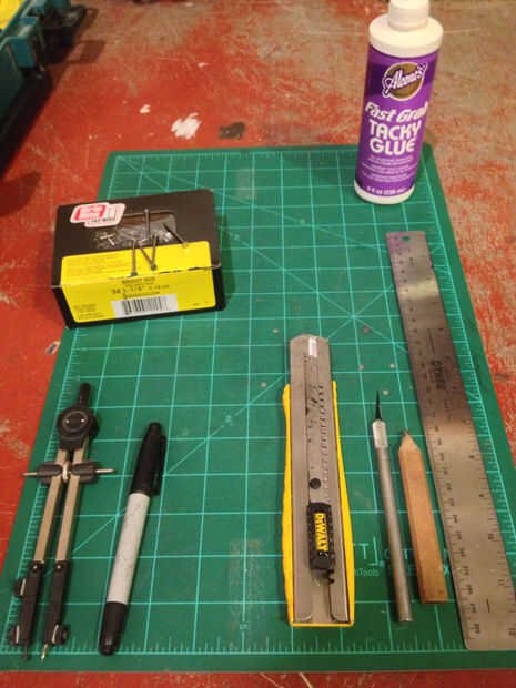 3) buen cuchillo o dos (x-acto con hojas #11)