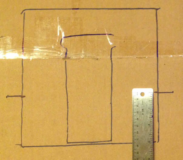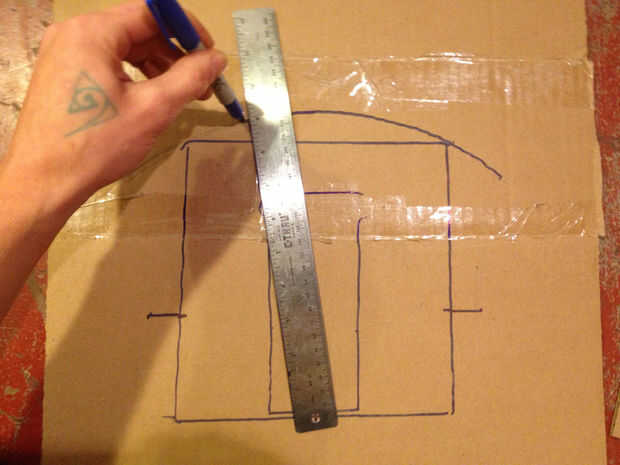 Algunas notas: tratar de hacer las líneas de construcción en el lado más sucio de la pieza de cartón que está haciendo, entonces usted puede poner la cara limpia hacia fuera y ocultar mucho de su trabajo en el camino. He dibujado mis líneas de construcción en sharpie por lo que fueron fácilmente photographable, me animo a usar lápiz para poder borrar sus líneas más adelante.