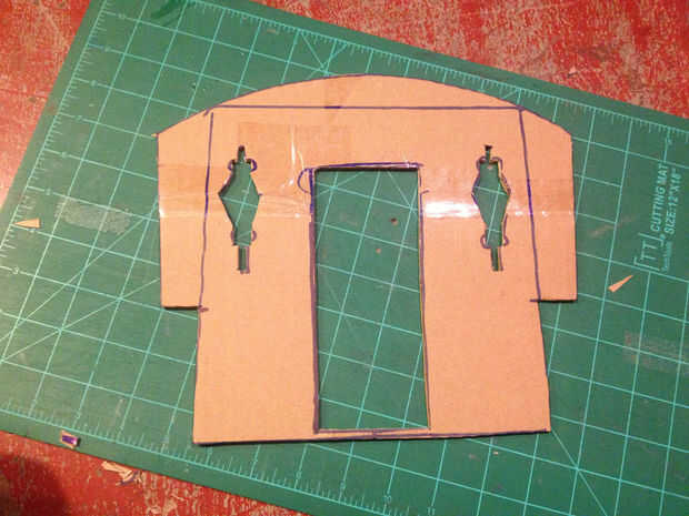 Para construir el panel frontal, trazar la cara de la caja de cerveza con la puerta en uno de los paneles más pequeños de la otra caja (trazar el borde exterior y el agujero de la puerta). Incluso es capaz de decir que mi caja de cerveza no es incluso cuadrado, encantador e inconsecuentes; es más importante que su trazado coincida con su caja.