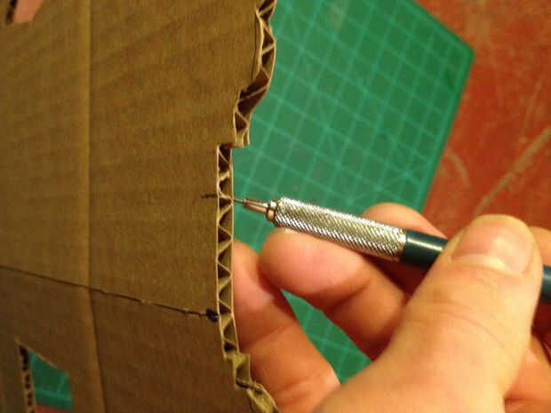Para doblar hacia abajo el borde, anotar tus pliegues para un ajuste apretado en las esquinas. Cuidadosamente corte sólo la cara externa de la cartulina, cortando sólo una cara, dejando los corrugaciones y atrás lado intacto. Si ha marcado el doblez en el lado que se plegará a, transferir su marca a la espalda para anotar.