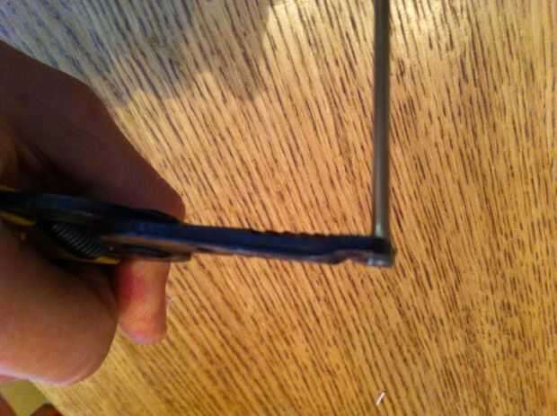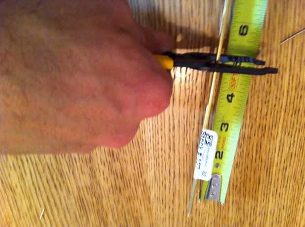 Cortar el 1/8" diámetro del tubo de cobre hasta 5". Pliegue los extremos para que se sientan más firmemente en el pegamento caliente.