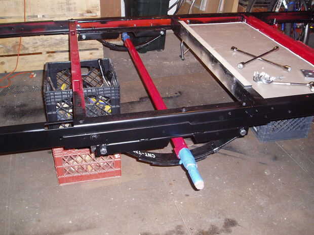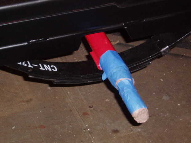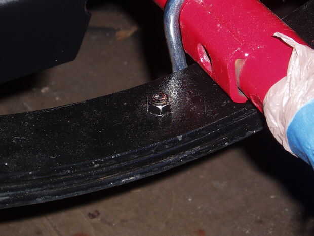 Un mod para este plan, de la fábrica planea colgar el árbol por encima de las ballestas en vez de abajo. Lo descubrí cuando hice que el árbol no quería aparearse para arriba limpiamente con el soporte del eje. Entonces tomó las ballestas apartes otra vez, volcó el perno poco y funcionó bien. Resulta que uno extremo del perno pequeño está diseñado para mate para arriba con un orificio en el soporte del eje.