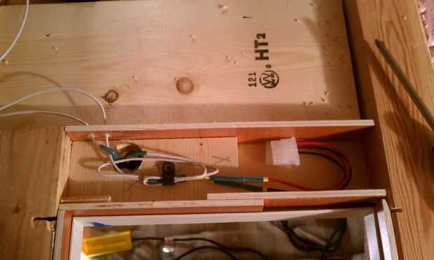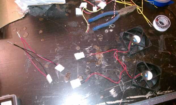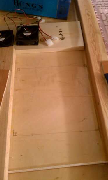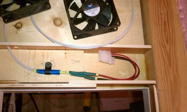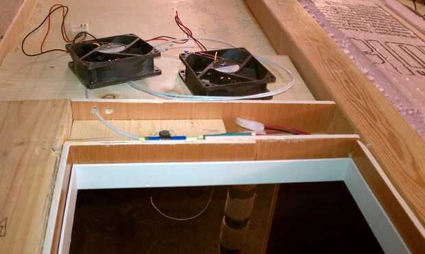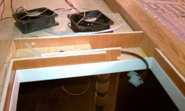 At the appropriate point, you'll have to cut a hole for a vent.  Alambré ventiladores de ventilación separados que eran realmente fans de PC de 12 voltios.