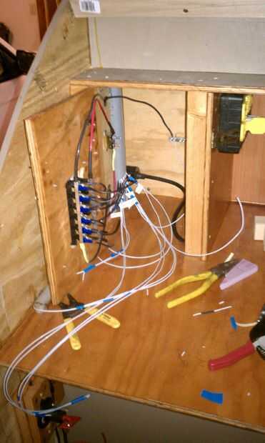 Corrí el cableado por el techo, perforación horizontal a través de largueros los cables. Me persiguieron los cables hacia abajo a través del tubo de conducto y comenzó a conectar con el panel de fusibles. Me pareció muy importante etiquetar los cables. Si usted planea usar LEDs desea también seguimiento de polaridad demasiado!!