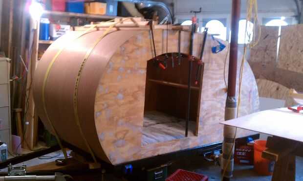 Otra vez una sola pieza no estira la distancia entera. Recortar la primera hoja, para termina a mitad de camino en uno de los largueros. Luego corte otro pedazo para adaptarse desde el mástil hacia el mástil triplicado hasta donde irá la bisagra evidenció.
