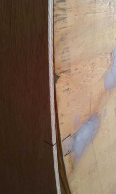 Tuve algunos problemas para conseguir la hoja para poner en el spar triplicada para arriba así que terminé con un montón de pequeños clavos para mantenerlo en su lugar hasta que la bisagra se atornilla en lugar. Ver el siguiente paso.