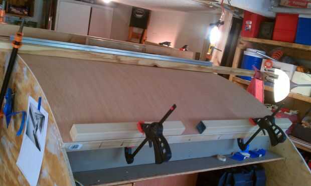Simplemente siga las instrucciones para fijarla. Inicialmente utilicé 2 x 2 y abrazaderas para mantener la piel en su lugar como pegamento curado. Tuve problemas leve con el labio de la madera contrachapada de 5mm alojarse, por lo que utiliza un montón de clavos diminutos. Soy un poco anal retentiva a veces.
