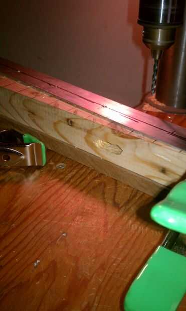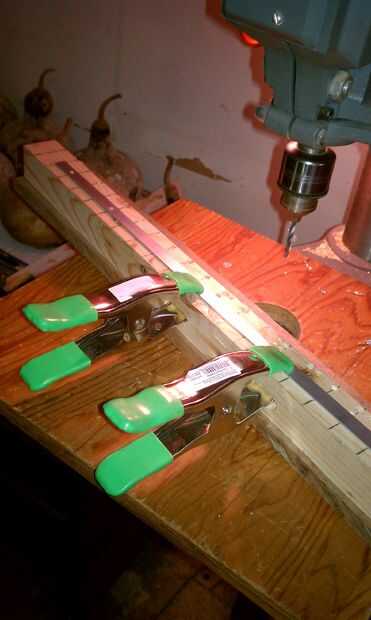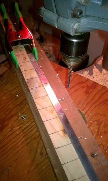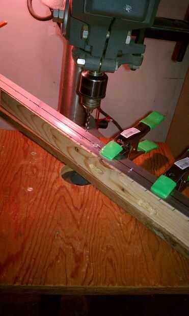 Hice mi recorte un poco heterodoxo. Mayoría de la gente use una moldura de aluminio en forma de T que crea una cubierta natural de la costura de la puerta. Me ganas de conseguir este hecho usé sólo 1/2 pulgadas de ángulo de Lowes y ACE. Utilicé tornillos torno con cabezas de gran tamaño para sujetar. Utilicé una plantilla sencilla en mi taladro para mantener el ángulo al mientras que los orificios perforados previamente. Trate de asegurarse de que los agujeros no se superponen con bits adyacentes del ajuste. Tenía unos puntos donde cruzaron los tornillos. Es un dolor en el cuello!!