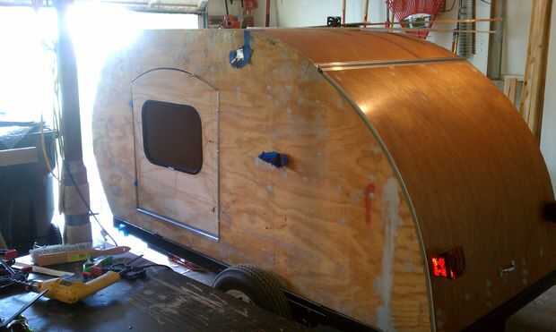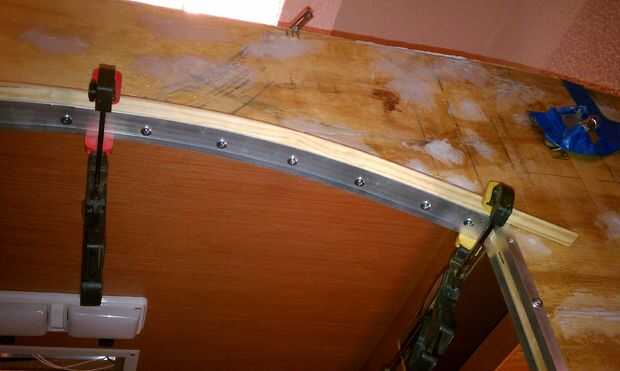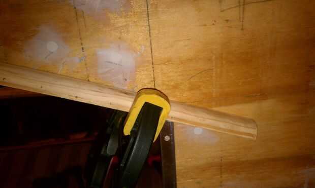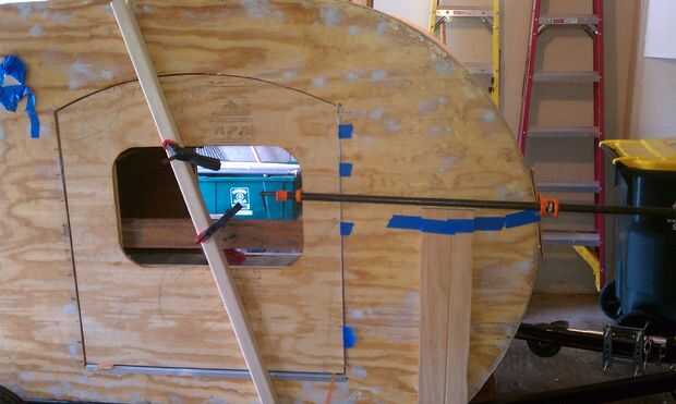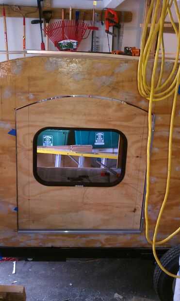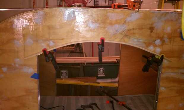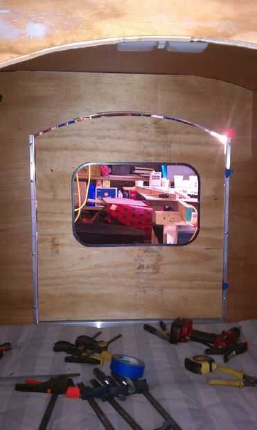 Para obtener la moldura para doblar fácilmente fijé un trozo de conducto vertical. Cubierto el fondo con cinta adhesiva. Coloque la moldura interior, luego verter en agua hirviendo de la tetera. (No dicen a mi esposa que usaba su tetera.) Después de unos 5 minutos había derramado y era mucho más flexibles. Entonces puesto a remolque.