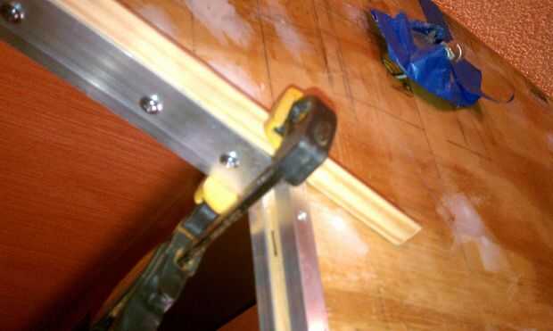 Una parte crítica de colocar la moldura fue usando una broca bisagra de carga del puerto. Se trata de un accesorio que se centra un agujero piloto en medio de una abertura. Entonces usted puede regresar taladrar el agujero sabiendo exactamente en el lugar. Super fácil de usar (altho que necesitaban un poco de grafito en polvo al principio). Ver aquí: http://www.harborfreight.com/3-piece-hinge-drill-bit-set-41907.html. Recomendamos este tipo de herramientas.