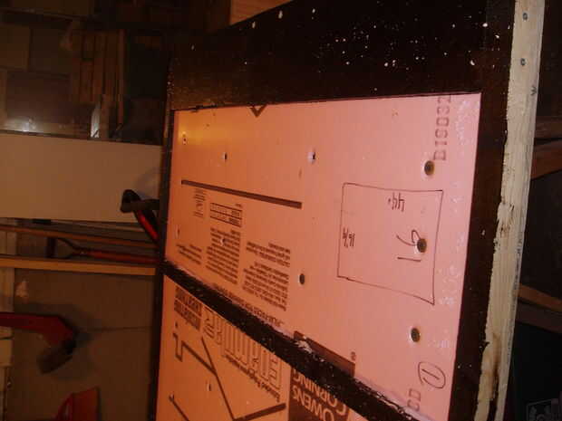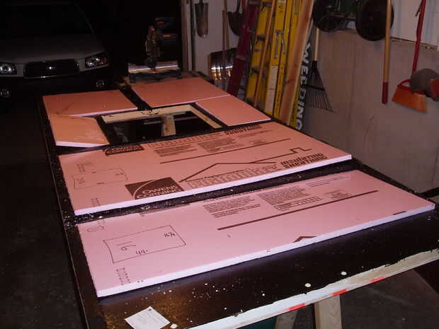 He utilizado 3/4 aislamiento de espuma de color rosa sólido. Cortar para caber. hay una membrana plástica que despelleja, me aseguré de membrana. Hice las piezas tan ajustado como sea posible. Entonces utiliza pegamento de construcción, tornillos y arandelas fender para sujetar.