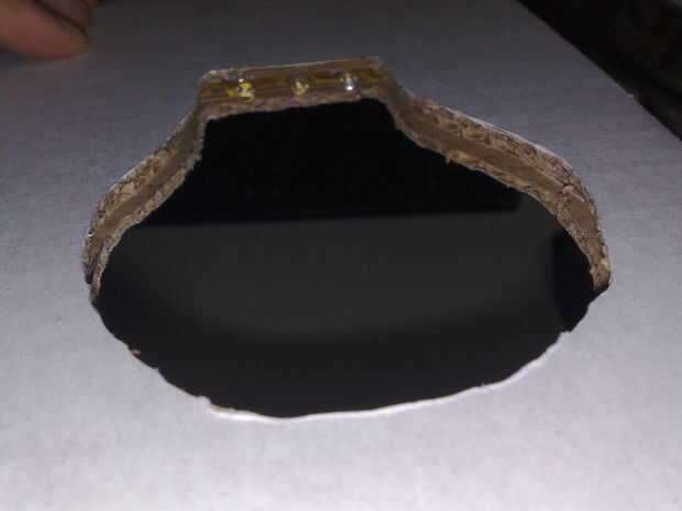 y marco de cartón con orificio como lámpara con LEDs hundido (oculto) dentro de