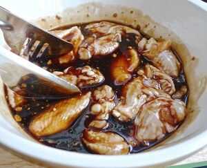 sirve 4 a 6Paso 1: ingredientes 5 libras de alitas de pollo, separados en las alas y bracitos, consejos descartadosIngredientes de la marinada1 cucharadas de salsa de soja1 cucharada picada ajojengibre 1 cucharada picada1 cucharada de aceite de sésam