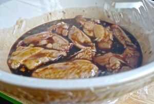sirve 4 a 6Paso 1: ingredientes 5 libras de alitas de pollo, separados en las alas y bracitos, consejos descartadosIngredientes de la marinada1 cucharadas de salsa de soja1 cucharada picada ajojengibre 1 cucharada picada1 cucharada de aceite de sésam