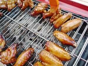 Si estamos terminando las alas con una salsa de barbacoa o esmalte, especialmente uno que contiene azúcar o miel, aplicarla sólo hacia el final de la cocción para que las alas no se queman.