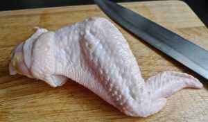 Es más barato comprar todo alas que todavía están en tres partes y cortarlas usted mismo. El ala entero consta de tres partes: el drumette (parece un palillo de miniatura), el wingette (plana) o parte de doble ala deshuesado y la punta.