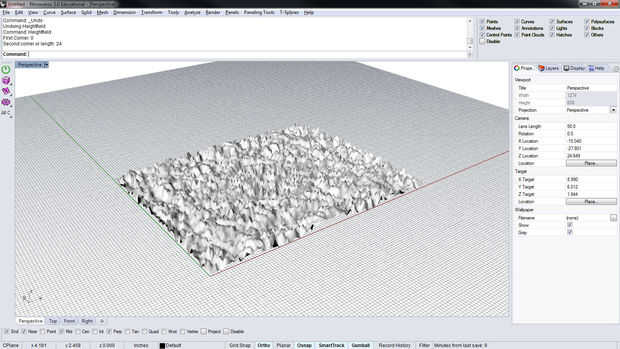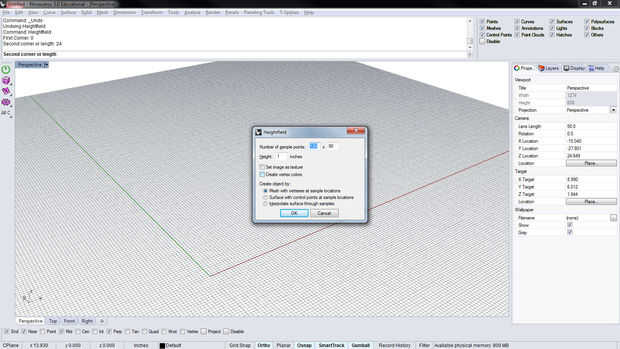 Hay muchas maneras de ir sobre modelado de un relieve, pero cubriré mi método preferido aquí utilizando Rhino. En primer lugar, ejecute el comando Heightfield . Heightfield utilizará una imagen de entrada de escala de grises a unidad de la creación de la relevación en los colores luz definir altos puntos y negros definen mínimos. Seleccione la imagen que desea generar el alivio. A continuación, establecer su origen. Se le pedirá que introduzca la longitud del heightfield. Establecer la longitud de su relieve deseado. Entonces usted necesitará definir el número de puntos de muestra, profundidad total y la geometría deseada. Los puntos de la muestra definirán cómo la superficie de salida se ajusta a los colores de la imagen. Experimentar con esta configuración hasta que encuentre algo que logra una resolución que satisfaga sus necesidades. Prefiero una malla con vértices en los puntos de muestra de salida como este le permitirá crear un índice bastante alto sin bogging hacia abajo de la computadora. Usted conseguirá una malla irregular al principio, pero esta malla puede alisar usando el libre WeaverBird plug-in con el comando wbCatmullClark - un algoritmo de subdivisión de la malla. Puede repetir este comando en la malla hasta lograr el nivel de suavidad que usted desea. Se necesita exportar esta malla y ponerla en el software CAM de elección en orden a la trayectoria del modelo.