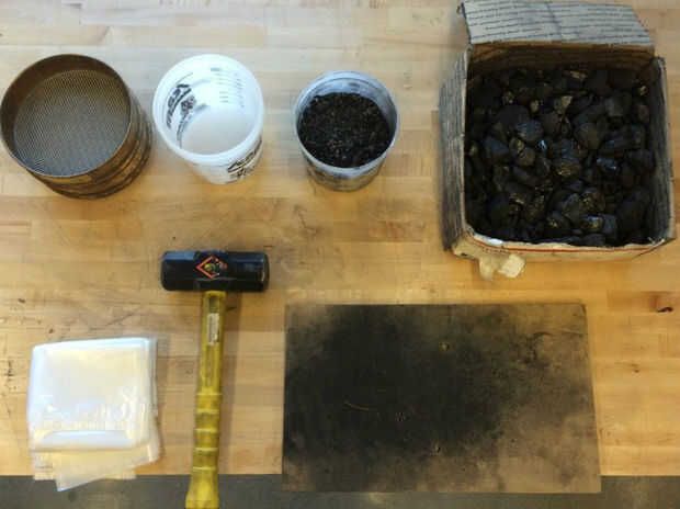 Determinar cómo procesar el carbón dependerá principalmente del grado de fineza y total volumen requerido. Si había necesitaba una cantidad muy grande, yo probablemente habría desarrollado una manera más automatizada de crear el polvo. Ya que no necesita mucho más que un cubo pequeño, sin embargo, decidí manejar manualmente el proceso de creación de polvo. Con un trineo de 10 lb, pude romper el carbón en trozos más pequeños, más manejables. Éstos entonces fueron procesados en una licuadora pequeña en el polvo que estaba buscando para crear.