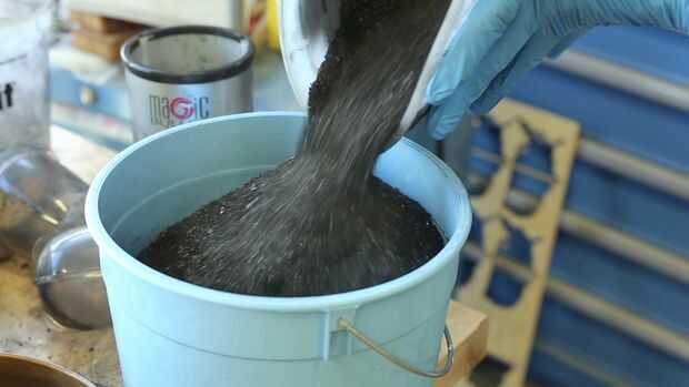 Utilizando el molde que había creado en el paso anterior, pude Vierta la mezcla de carbón seco en el molde y medida para ver si había hecho lo suficiente para mi pieza. Una vez que hice, mezclé todo el lote de polvo con resina epoxi hasta que miró un poco húmedo el carbón. No desea agregar demasiado o la resina será más visible en el panel final, dando todo un aspecto de 'plástico-y'.