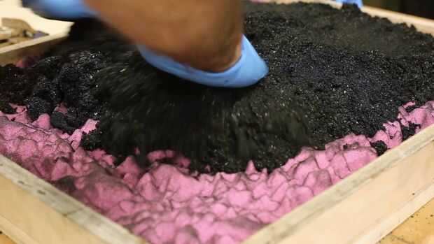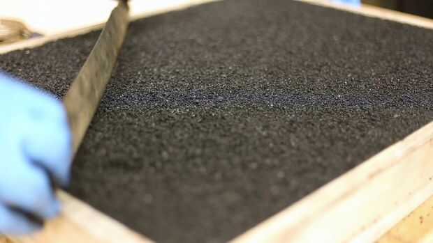 Una vez que el carbón y el epoxy se mezclaron completamente, vierte la mezcla en el molde. El resto es casi tan sencillo como usted imaginaría. Nivelado hacia fuera el carbón en el molde, asegurándose de que el paquete todo en muy bien para evitar vacíos en el molde. Para asegurar que el polvo era bien lleno que el epoxi todo unen, corté un pedazo de madera a las dimensiones exactas del panel final y se utiliza para aplicar sujeción incluso presión sobre todo el panel.