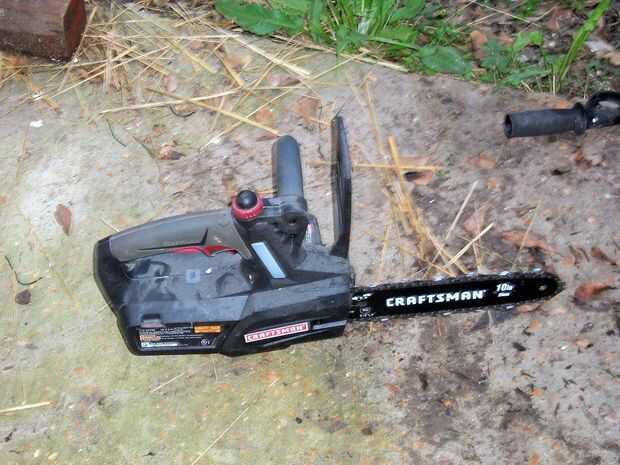 Una sierra de cadena con pilas, pude haber utilicé una sierra de regular, y así que se puede!
