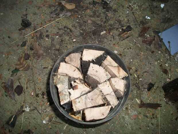 Primero que corté el roble a rojo un poco menos de la longitud del café puede, luego dividirla hasta aproximadamente 3/4" densamente.