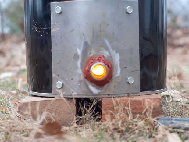 Tomé un soplete de propano encendido y lo colocó en la punta de la entrada de aire en el reactor y dejarlo allí. He cerrado el fresco aire válvula de bola de entrada y golpeó el arranque eléctrico en el generador.