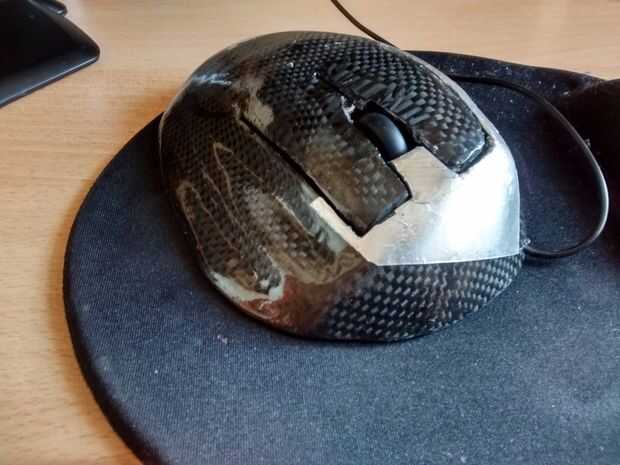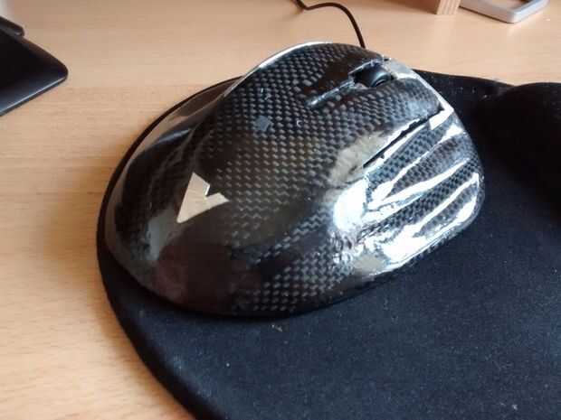 Tomé la inspiración de este gran proyecto por Hey Jude: ratón Ergo, pero mi trabajo es muy diferente en diseño y método. La forma está libremente inspirada en una Func MS-3, pero difiere en la inclinación que tiene la mano sujetándolo. Las técnicas que emplea en la fabricación son lo suficientemente diferentes como para justificar este proyecto. En lugar de formar la espuma de poliestireno, hice una de fibra de vidrio del molde que he utilizado para hacer un ratón de fibra (y de fibra de vidrio) de carbono.