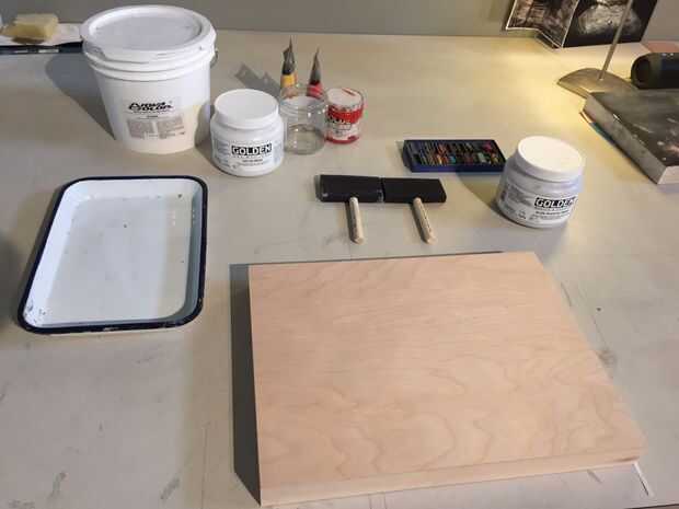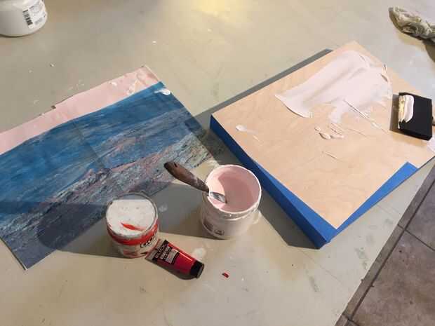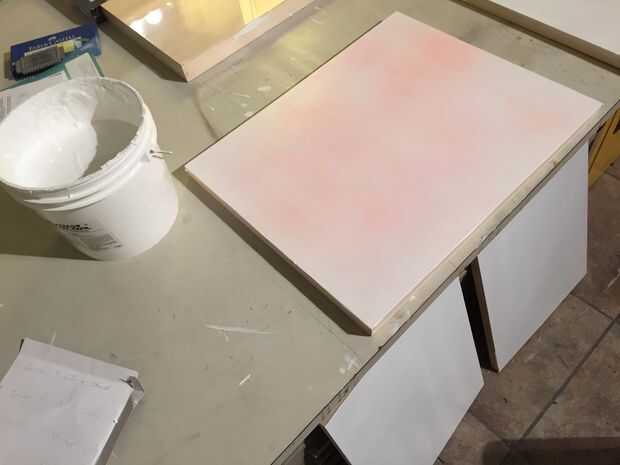 **Tip: Puede teñir su Gesso acrílico colores si desea que el color base para no ser blanco. Ver foto por ejemplo de un gesso de color de rosa.