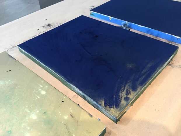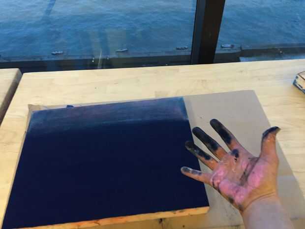 Colóquese guantes y frotar el pigmento en la superficie a mano hasta que la superficie tiene un aspecto aterciopelado suave, como pulimentar en asegurarse de que he cubierto cualquier pequeños puntos de luz que muestra a través de.