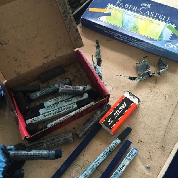 Cuando la segunda capa de pastel de la tierra está completamente seca, utilizo carbón comprimido suave o pasteles Sennelier colores.