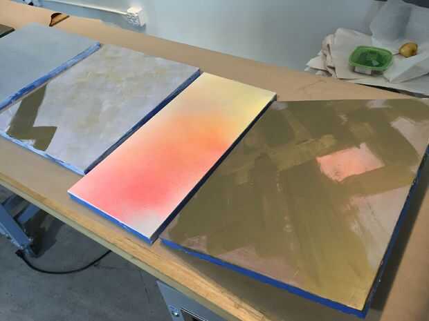 Paso 1: Como antes de que se aplican colores pastel tierra con un cepillo de espuma, usando incluso movimientos y permitiendo que cada capa completamente seco antes de aplicar la siguiente.