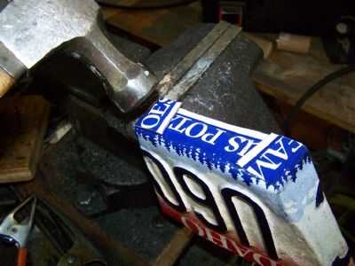 I se apoderó de los lados de la pala en la derecha del tornillo de banco uno por uno en las esquinas y utilizar mi martillo para hacer una curva limpia agradable.