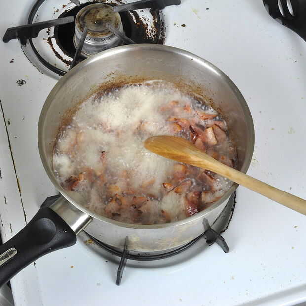 • (Mina hecho un lío de la cacerola ya que siempre estaba revolviendo por lo que no puede hacer esto si realmente no quieres limpiar ese desorden).