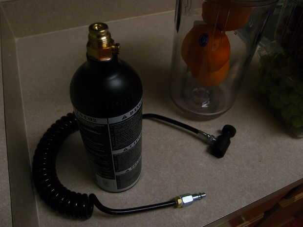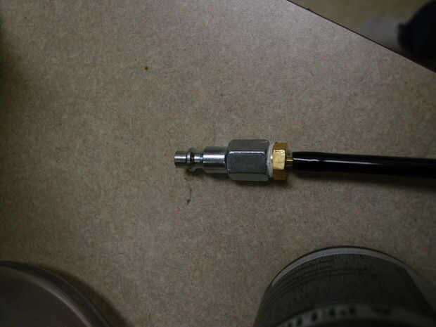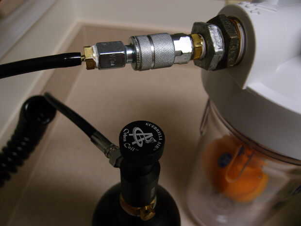 La línea de suministro remoto facilita esta configuración. Los tornillos de un lado en el tanque y el otro tiene generalmente un rápido sistema. No pude encontrar accesorios que se adaptan rápida conectan a las conexiones de plomería de la carcasa del filtro de agua, así que solo corte el paintball sujetador de conexión rápida apagado. Con eso fuera del camino, sólo usar un accesorio de la lengüeta y un compresor de aire rápido adaptador de conexión para trabajar cosas con el agua del filtro.