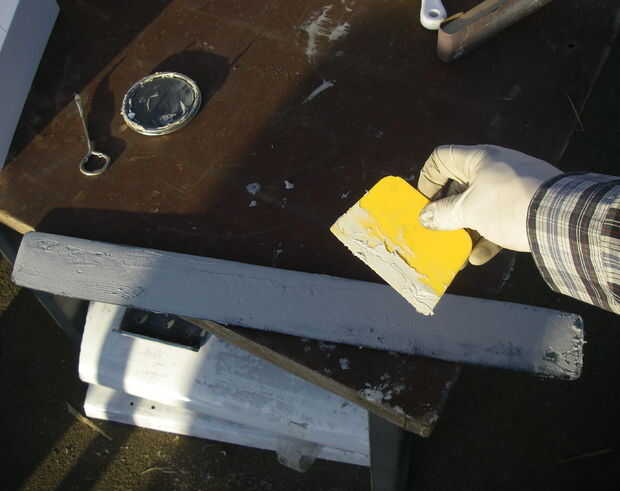 Bondo es barato. Extensión gruesa. Poliester curado es una reacción anaeróbica. Así no curan las cosas en la superficie. Trabajar en los agujeros de la bandeja.