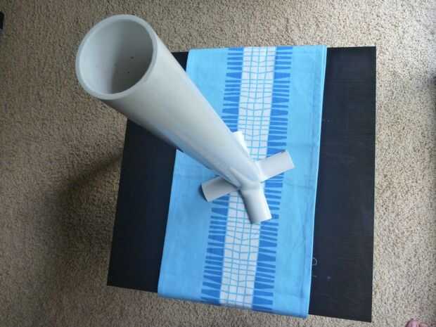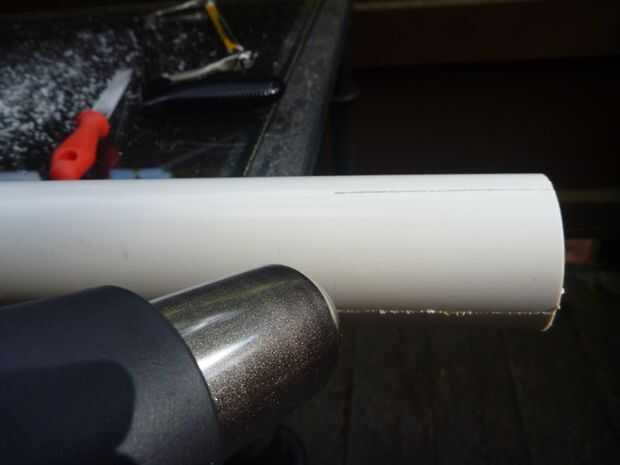 Con pistola de calor, calor en 3 pulgadas marca mientras gira lentamente el tubo durante 1 minuto aproximadamente o hasta que el tubo es lo suficientemente lento para doblar. Entonces extiende los 4 cuartos y sostener durante un minuto o hasta que se enfría. Opcionalmente, pueden presentar o las piernas para quitar los bordes ásperos de la arena.