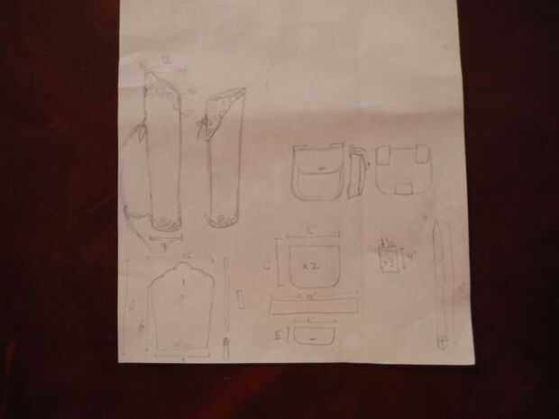 El borde inferior es de 10 pulgadas a través y la parte superior es de 14 pulgadas a través en el punto más ancho antes de que comience de forma cónica. El lado solo se coser cerrado encima de la parte inferior hasta el punto más ancho, para mi las flechas 25 pulgadas. El triángulo superior es de aproximadamente cinco pulgadas de alto, a la altura total de 30 pulgadas, dos pulgadas más largas que mis flechas para que las plumas son totalmente cubierta en el extremo (ver fotos de carcaj terminado para aclaración visual). Para hacer el carcaj más o menos para flechas de tamaño diferentes a la mía, acortar o alargar la altura total del patrón. Para hacer un carcaj más angosta o ancha, reducir el borde inferior y el punto más ancho de la aljaba (cada uno en la misma cantidad para mantener el ángulo). Las vieiras en el borde del triángulo son meramente decorativas y fueron manos libre en después fue dibujado el patrón principal.