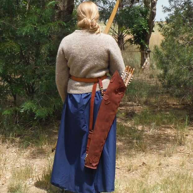 Un pequeño bucle cerca de 6 pulgadas, se une al clip superior de la correa de hombro. Se utiliza para suspender la aljaba de un cinturón (o la aljaba puede ser usada en la correa de la correa de hombro, pero me parece que tiende a la aleta alrededor si esta manera).