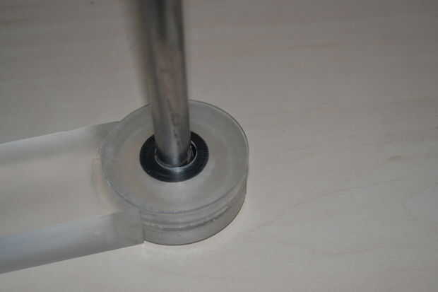 no he utilizado esto para nada, sólo construyó un prototipo de los materiales en mano.Me han publicado fotos, ojalá bastante auto explicativo. Las fotos no son exactamente lo que describo. Una vez más, sólo lo que he podido trabajar hasta como un eje