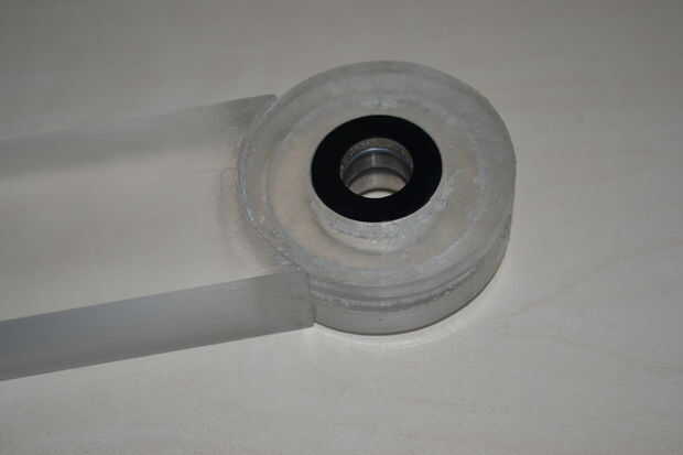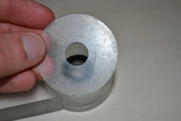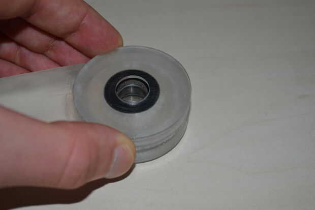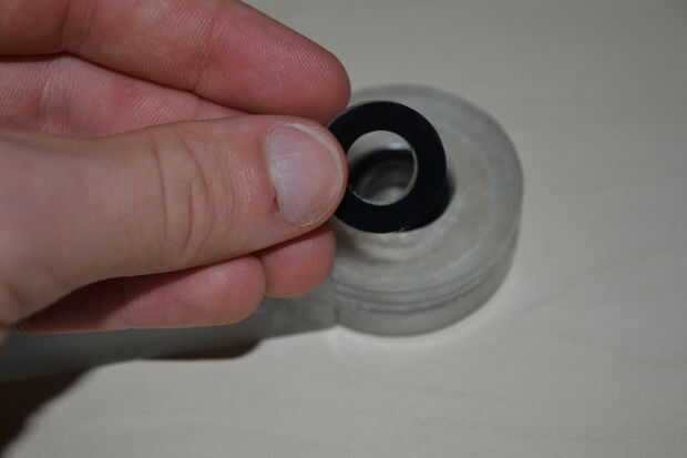 Una arandela del tamaño de los rodamientos se coloca en y la carcasa sellada por más cilindros.