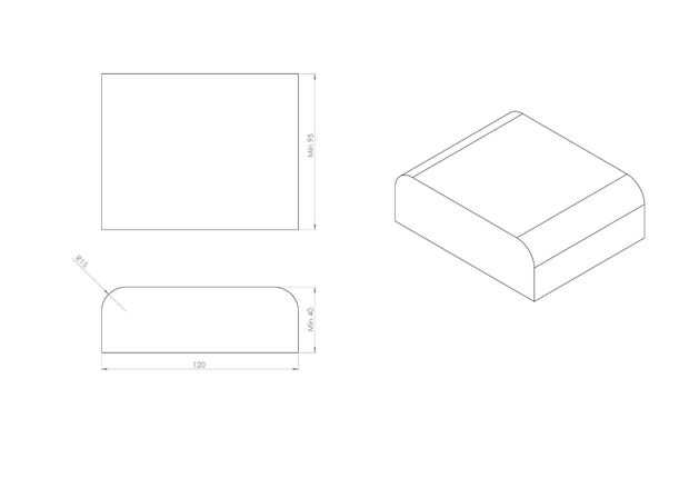Aquí la dimensión importante es 120mm + - 1mm es aceptable, después de cortar la pieza de madera que la longitud, control con una escuadra que le ángulos es correctos.