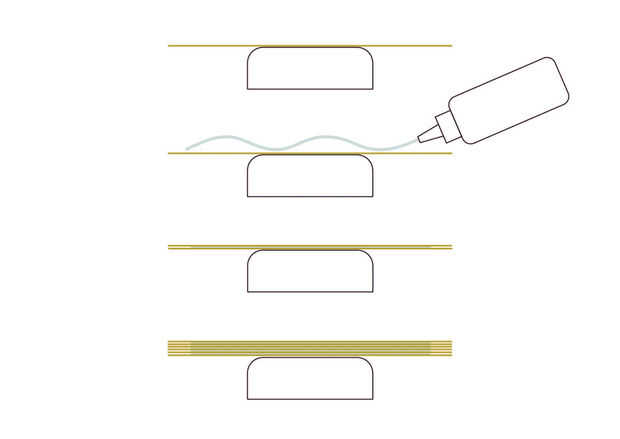 Hoja-pegamento-hoja-pegamento... la hoja, no dude en ser generosos con el pegamento, it´ll remojo hacia fuera.