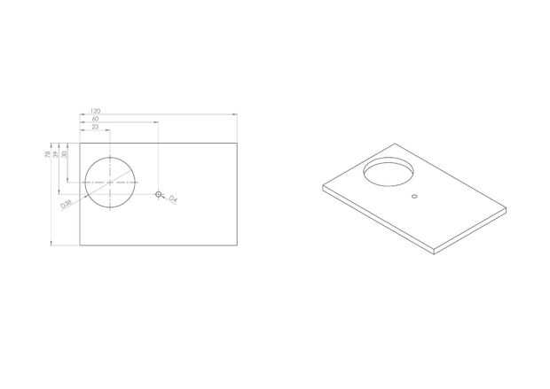 Una vez que esta pieza está seca, suelte las abrazaderas y taladrar los agujeros para el tornillo del ventilador y el ensamblaje, ser lo más preciso posible, este agujero debe alinear con el montaje del ventilador en la parte de plástico, si ya se ha impreso, compruebe antes de perforar.