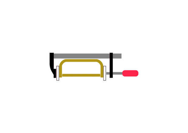 Después se perforan los agujeros, pegue las dos piezas de madera con una abrazadera. Asegúrese de que las dos piezas son exactamente positionned tecnológico: es decir la parte de plástico suavemente se desliza hacia adentro y hacia afuera.