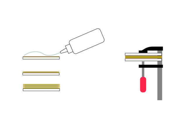 Ponga el 6 8 x 120 x 95 hojas juntas y dejar que el pegamento de secado a una abrazadera, apenas como usted hicieron para la pieza curvada, pero esta vez, no hay necesidad de vapor ya que la parte es plana.