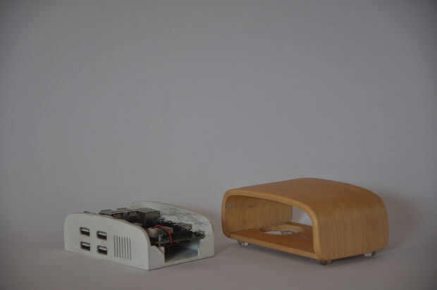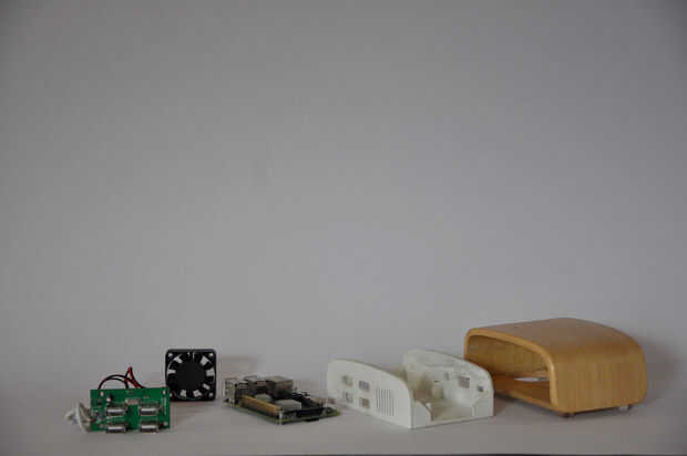 -Conecte su tarjeta SD, Wi Fi y bluetooth dongle en el Pi, deslice la pieza de plástico en y poner tornillo todo junto.