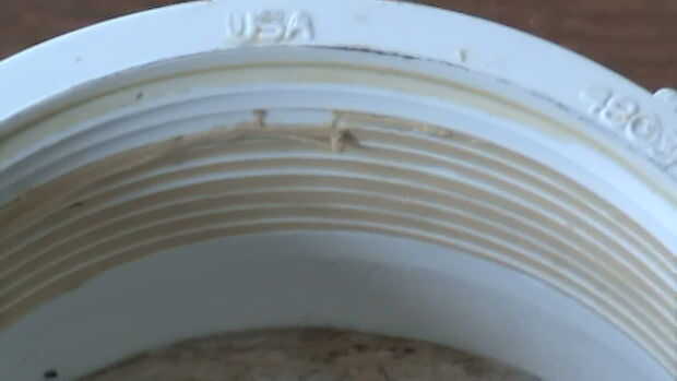 Poner algunos masilla en los hilos de rosca del empalme de PVC. ASEGÚRESE DE QUE LA MASILLA ESTÁ DISTRIBUIDA UNIFORMEMENTE.