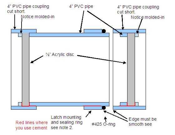 Un extremo de la Asamblea consigue pegada en una ventana de acrílico. Este es el final cerrado o fijo (a la izquierda en el diagrama). Ello requiere un 1/2" espesor acrílico disco cortar un círculo agradable. Puse el tubo de 4" en la parte superior el acrílico y trazó el círculo dos veces, corte áspero con un jig de sierra, luego montados en el tubo de PVC con cinta de doble cara y utiliza un creador poco sobre mi mesa de la fresadora para hacer un disco perfecto. Estoy seguro de que no tiene que ser tan perfecto, pero vamos a usar epoxy más si cabe en el acoplamiento flojo. También puede cortar dos discos al mismo tiempo.