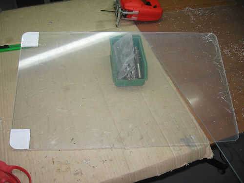 Vi el extremo cuadrado del drenaje y medir el diámetro en ambos extremos de la tubería. Ahora vieron estos dos círculos de plexiglás. Luego perfore un agujero un poco más pequeño y el más pequeño de los dos diámetros en un pvc casquillo de extremo. Pega el círculo más pequeño de plexiglás en la tapa (por dentro) y pegar esto en el extremo pequeño del drenaje. Asegúrese de que no hay rayones en el plexi, porque es donde hacer las fotos a través de. También asegúrese de que usted retire la lámina de protección antes de pegarlas.